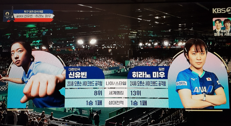 8강전 상대는 히라노(13위·일본) , 세계랭킹으로 따지면 신유빈(4위)이 우위에 있습니다. 경기 시작은 신유빈 선수가 좋았습니다. 신유빈 선수는 1, 2, 3게임을 내리 챙기며 리드를 잡았고, 다급해진 일본은 '유니폼 환복'을 요청했다. 그 사이 신유빈은 바나나, 비타민 물, 에너지 젤을 먹으며 체력을 보충했습니다.