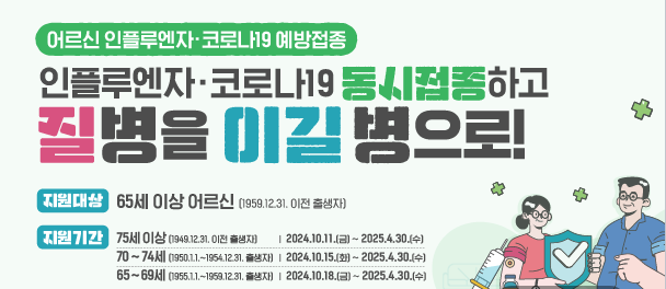 독감 유행에 대비하여 감염 시 중증화 위험을 줄이기 위하여 어린이, 임신부, 65세 이상 어르신의 경우 독감 유행 시기 이전에 독감 무료 예방접종을 권장하고 있습니다.