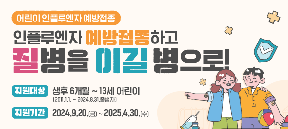 독감 유행에 대비하여 감염 시 중증화 위험을 줄이기 위하여 어린이, 임신부, 65세 이상 어르신의 경우 독감 유행 시기 이전에 독감 무료 예방접종을 권장하고 있습니다.