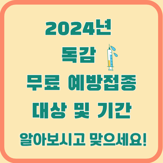 질병관리청은 ‘24 ~ ‘25 절기 독감(인플루엔자) 무료 예방접종을 9월 20일(수)부터 내년 4월 30일까지 실시한다고 하였으며, 올겨울 독감 유행에 대비하여 감염 시 중증화 위험을 줄이기 위하여 무료 예방접종을 실시합니다. 이 글에서는 2024년(독감) 인플루엔자 무료 예방접종 대상 및 기간, 지정의료기관에 대하여 안내해 드리겠습니다.