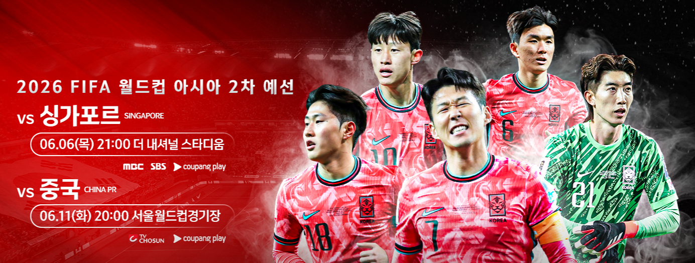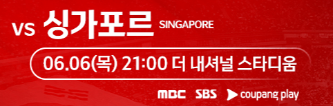 ◆ 대한민국 VS 싱가포르 : MBC, SBS, 쿠팡플레이에서 중계방송합니다.
