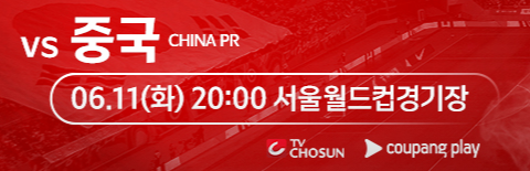 ◆ 대한민국 VS 중국 : TV 조선, 쿠팡플레이에서 중계방송합니다.